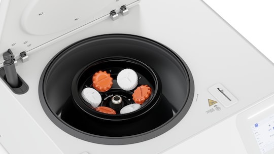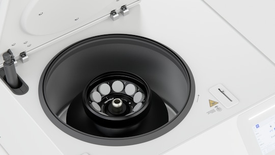 RFID technology automatically identifies the rotor upon installation. This significantly reduces the risk of user error by ensuring that the centrifuge automatically adjusts the selectable running parameters to match the installed rotor.