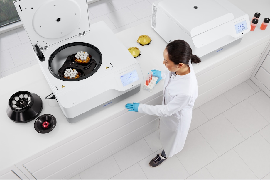 - Automatic lid drive for safe and ergonomic handling, aerosol-tight Eppendorf QuickLock® Pro lids for fast and ergonomic one-hand operation